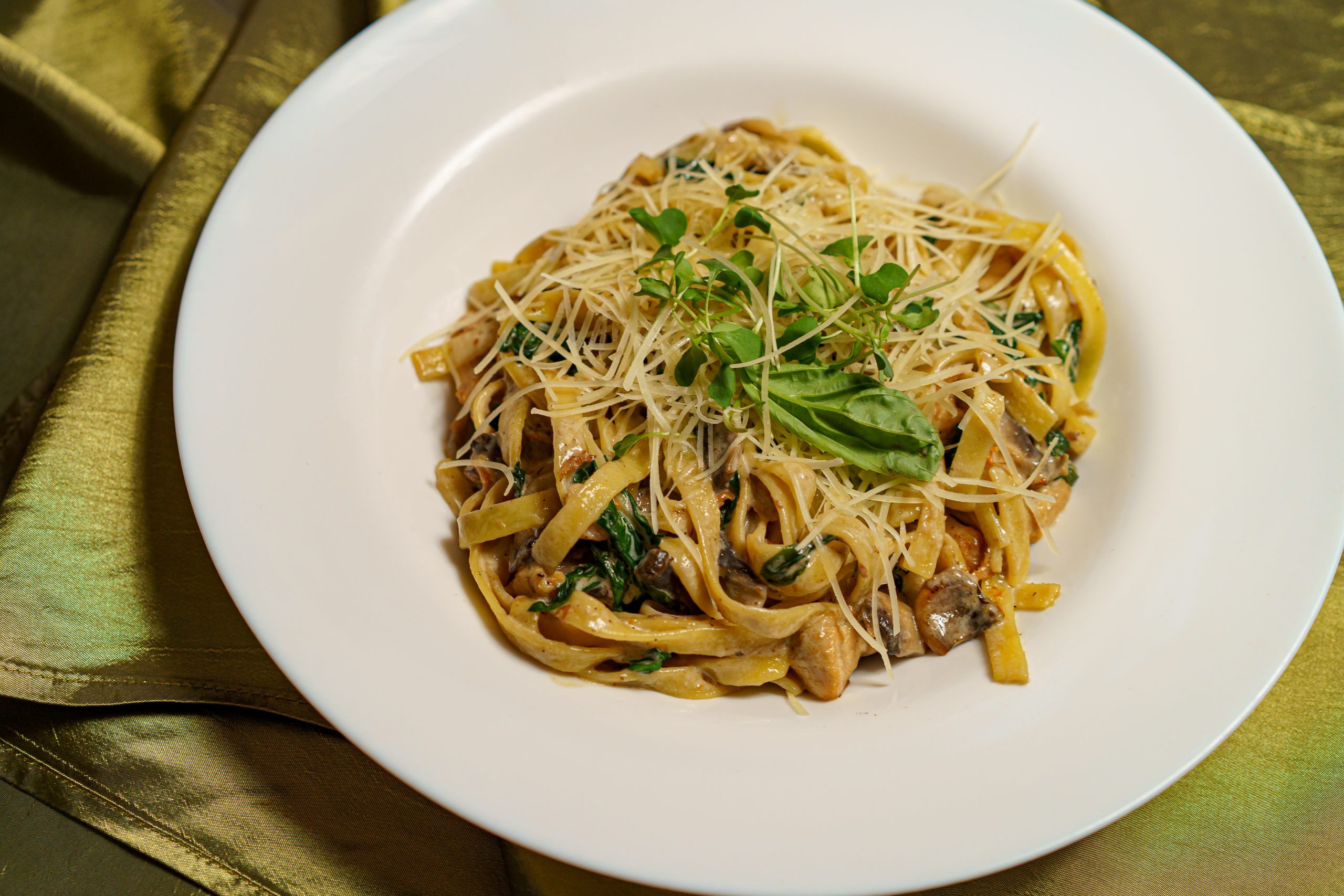 Tagliatelle cu sparanghel, bacon si rosii cherry in sos alb